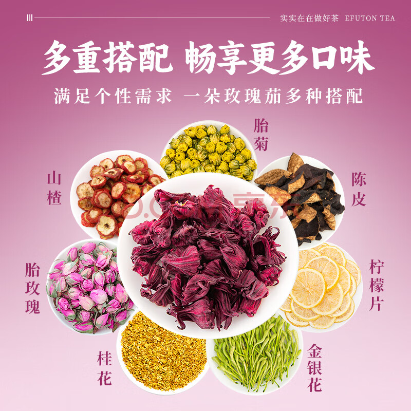商品相册:艺福堂 茶叶花草茶 洛神花玫瑰茄茶干75g 洛神仙子花茶酸梅汤养生茶凉茶第