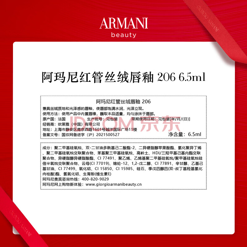 商品相册:阿玛尼红管唇釉#206陶土红棕 素颜口红不沾杯润唇膏生日礼物送女友礼盒第