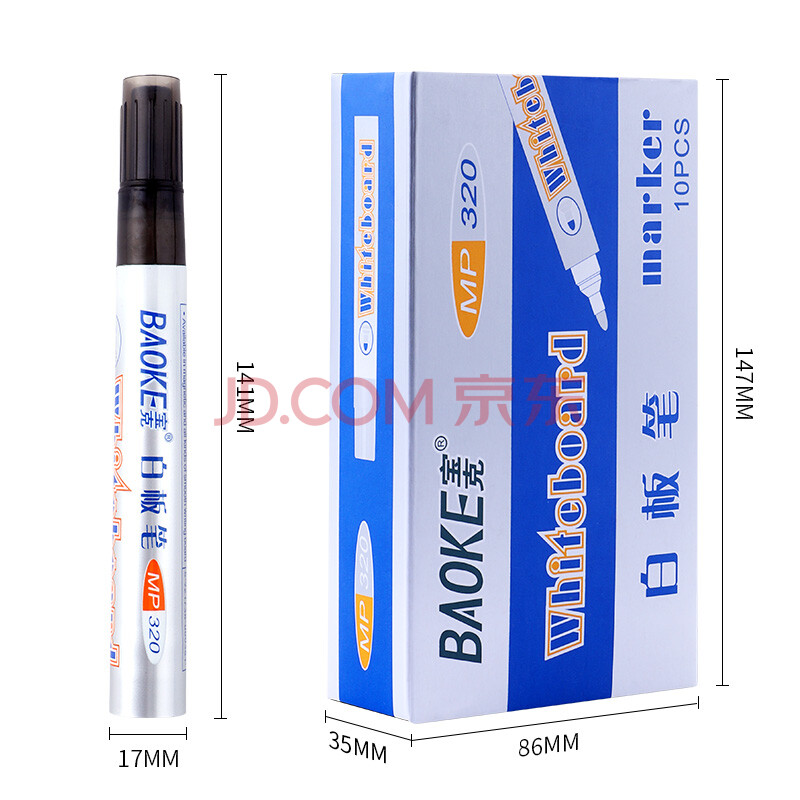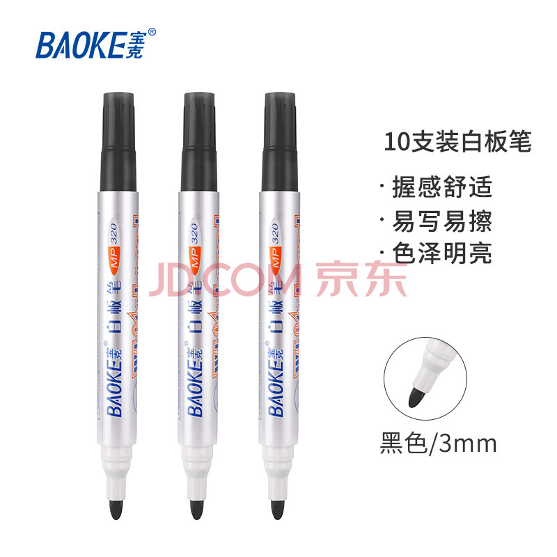 商品相册:宝克(BAOKE)MP320 办公会议教学白板笔可擦易擦 黑色 10支/盒第