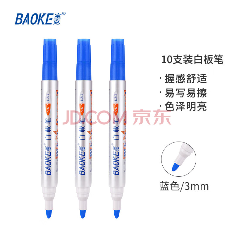 商品相册:宝克(BAOKE)MP320 办公会议教学白板笔可擦易擦 蓝色10支/盒第1张/共5
