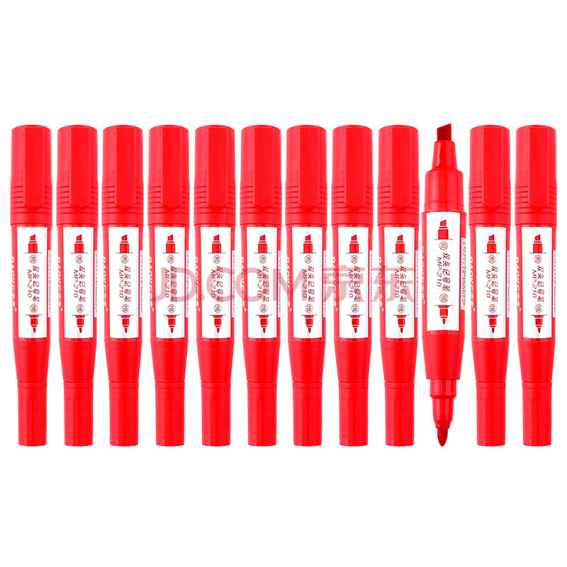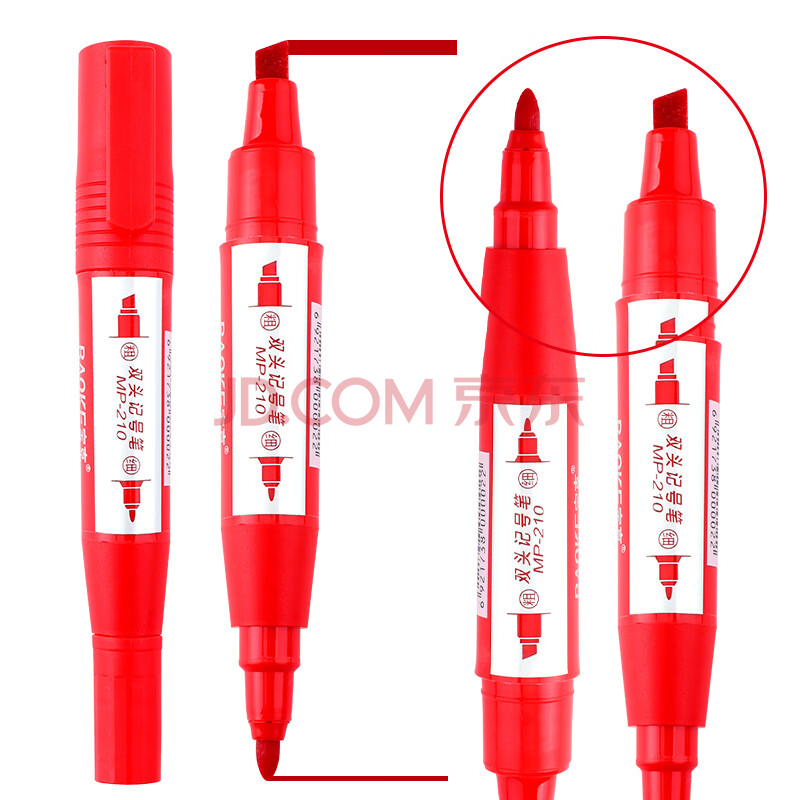 商品相册:宝克(BAOKE)MP210 油性粗细双头记号笔物流笔 红色 12支/盒第