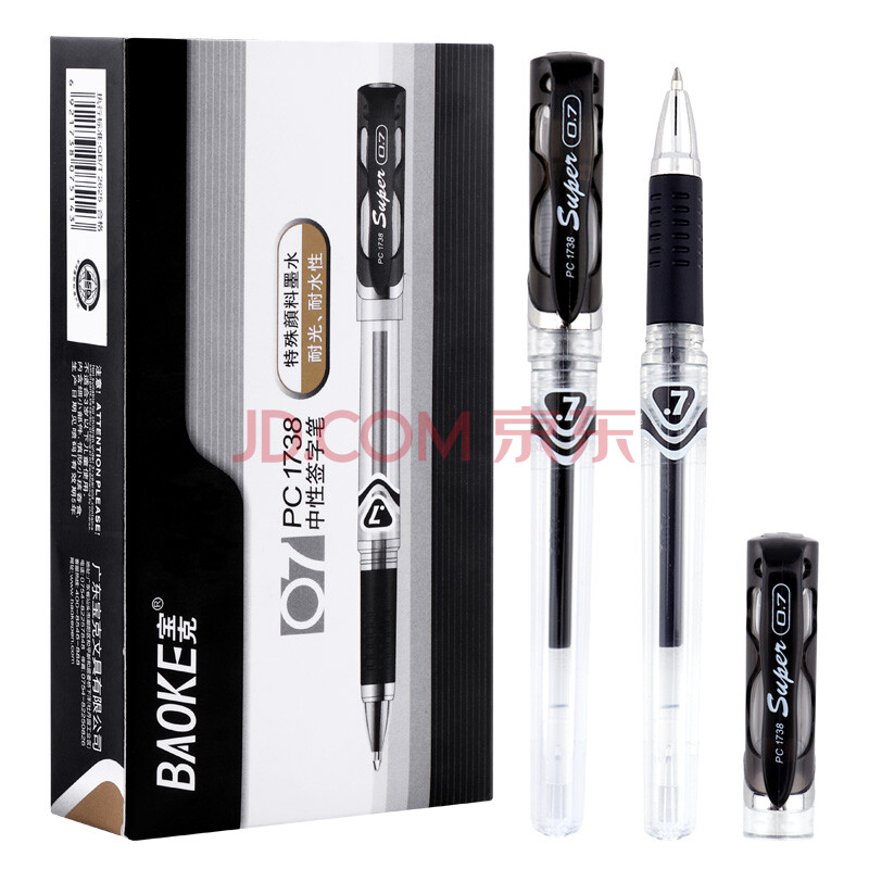 商品相册:宝克(BAOKE)PC1738 0.7mm中性笔签字笔水笔 黑色 12支/盒第