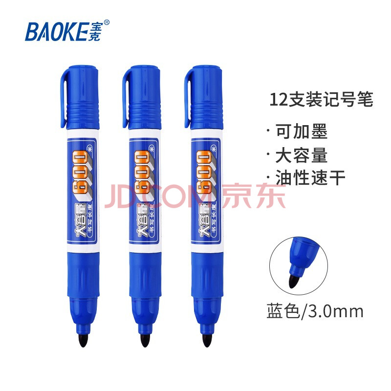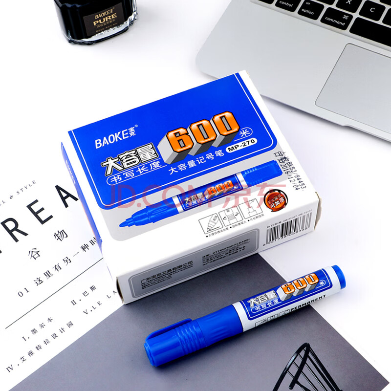 商品相册:宝克(BAOKE)MP270 蓝色油性记号笔大头笔 粗头标记笔 可加墨 12支/盒第