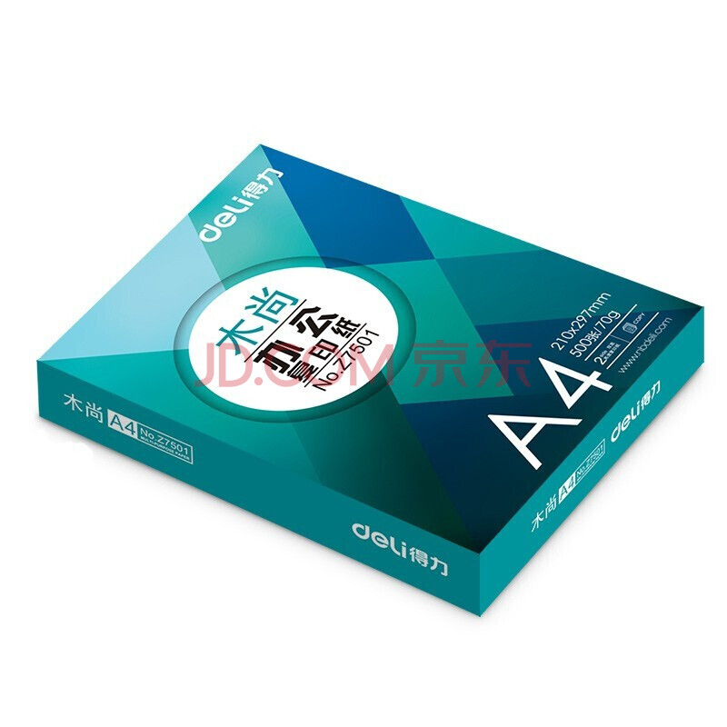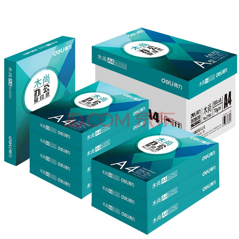 商品相册:得力(deli)木尚复印纸Z7503A4纸70g纸办公实用经济适用打印纸草稿纸木浆纸a4纸8包(整箱4000张)第