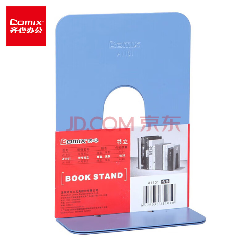 商品相册:齐心7英寸金属铁桌面书立置物架书收纳桌上书架 办公书靠2片 办公学习用品 蓝 A1101第