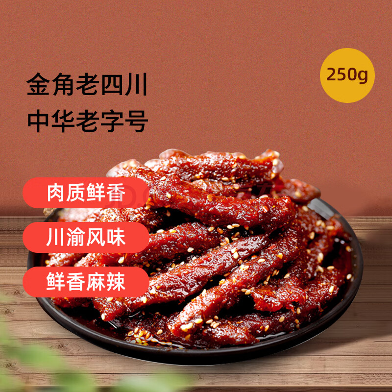 商品相册:老四川 巴蜀麻辣牛肉干250g 散装独立小包 四川特产金角中华老字号第
