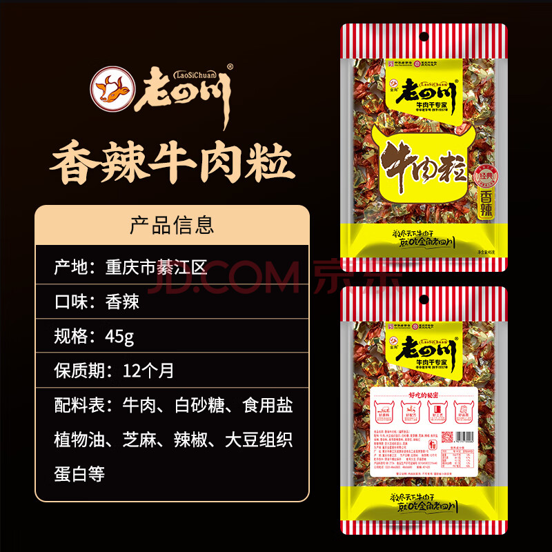 商品相册:老四川 香辣牛肉粒45g 休闲零食 四川特产金角中华老字号第
