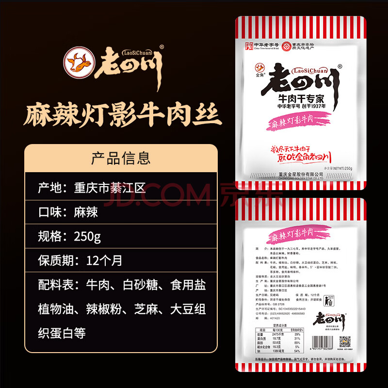 商品相册:老四川 麻辣灯影牛肉丝250g 休闲零食 四川特产 中华老字号第