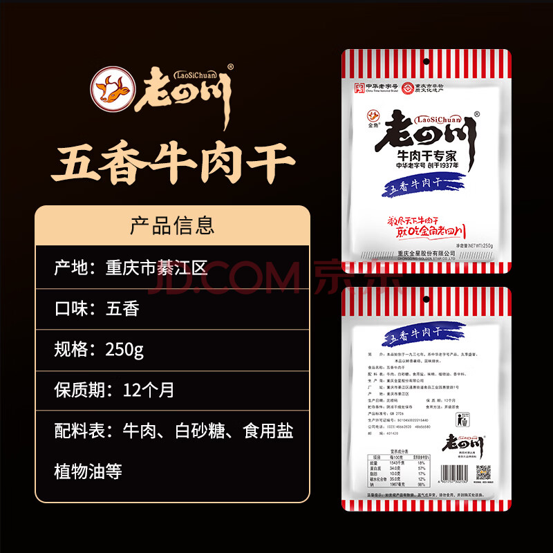 商品相册:老四川 五香牛肉干250g 休闲零食 四川特产金角中华老字号第