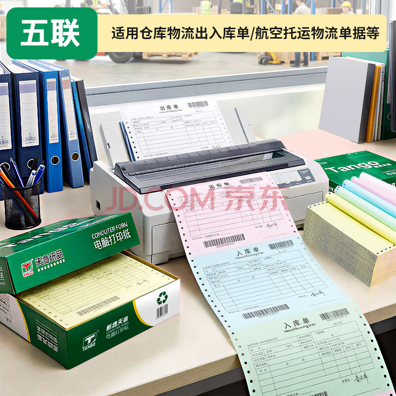 商品相册:天章 (TANGO)【缺页十倍赔】新绿天章五联整张可撕边 针式电脑打印纸 出入库送货单(241-5S 白红蓝绿黄 1000页)第