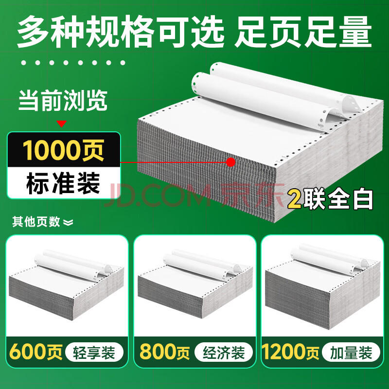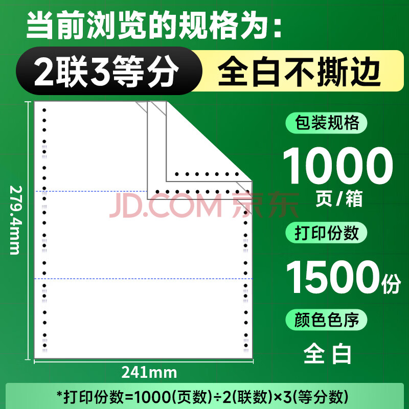 商品相册:天章 (TANGO)【缺页十倍赔】新绿天章二联三等分不撕边 针式电脑打印纸 出入库送货单 (241-2-1/3 全白 1000页)第