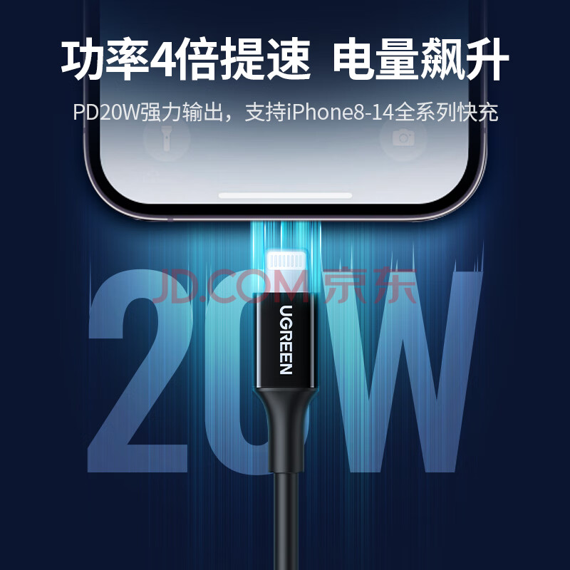 商品相册:绿联【官方MFi认证】适用苹果14/13充电线Type-C数据线PD30/20W快充Lightning接口iPhone手机2米第