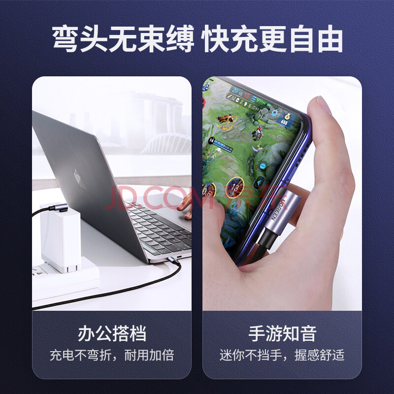 商品相册:绿联【手游弯头】双头Type-C数据线PD100W快充ctoc充电线适用苹果17/16/15华为荣耀小米平板笔记本1米第1张/共9