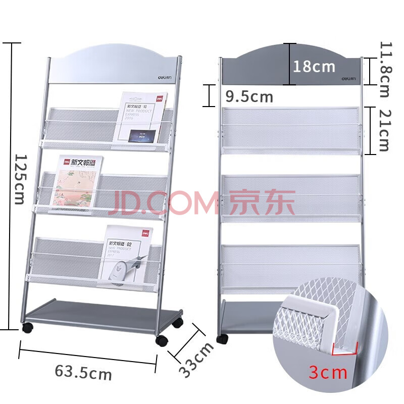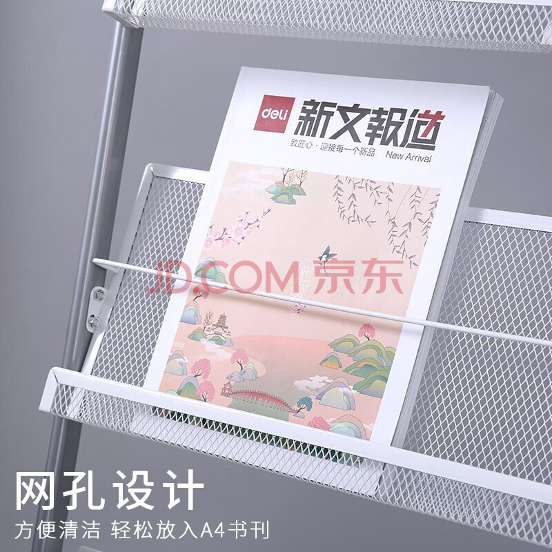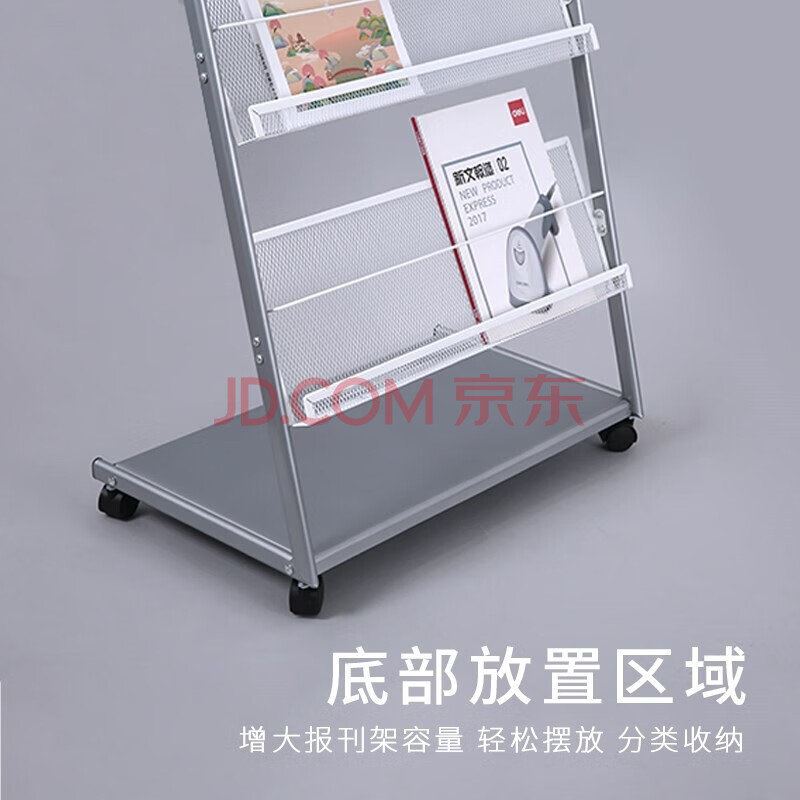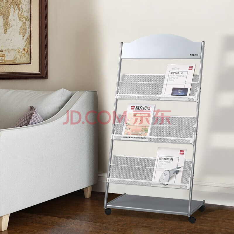 商品相册:得力三层金属报刊杂志架书刊架 宣传册展示架落地资料架 办公室置物架 高1.27米9308第