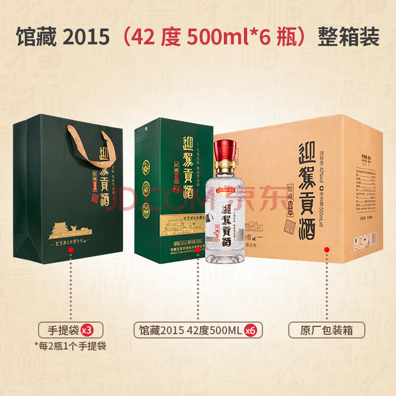 商品相册:迎驾贡酒 馆藏2015 浓香型白酒42度 500ml*6瓶整箱装纯粮酿造送礼宴请第