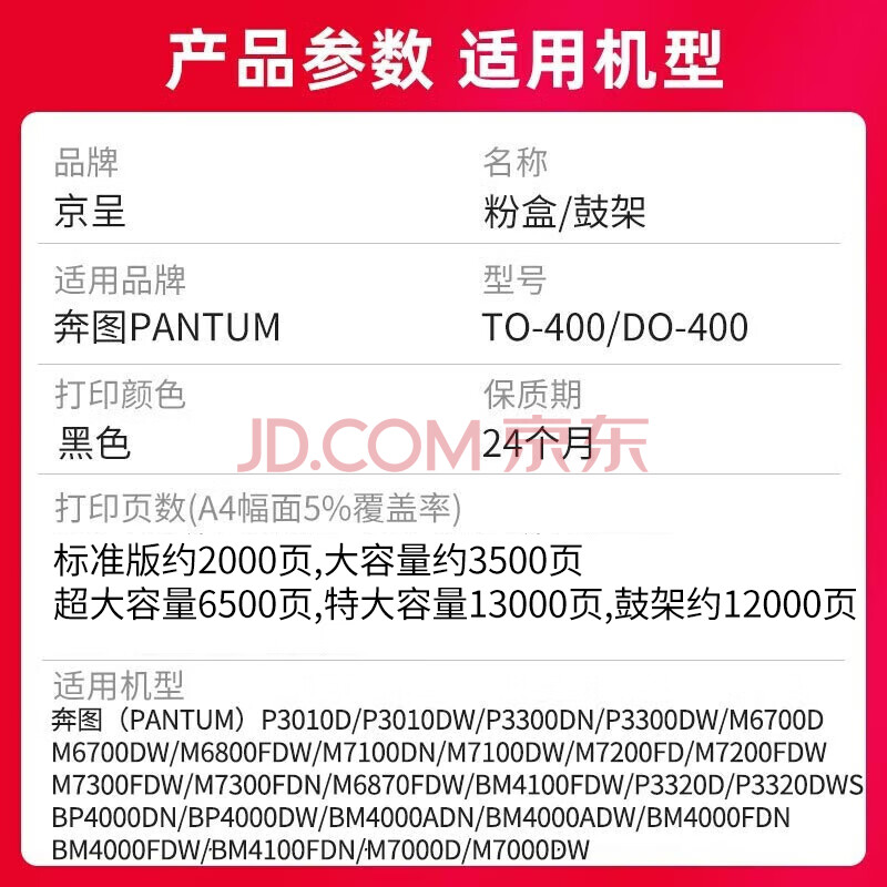 商品相册:京呈TO-400粉盒适用奔图PANTUM M7100DN/M7100DW打印机墨粉盒硒鼓碳粉 TO-400X超大容量粉盒第