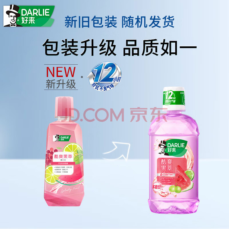 商品相册:好来(DARLIE)(原黑人)酷爽果萃漱口水250ml 清新口气温和洁净口腔防护新旧包装第