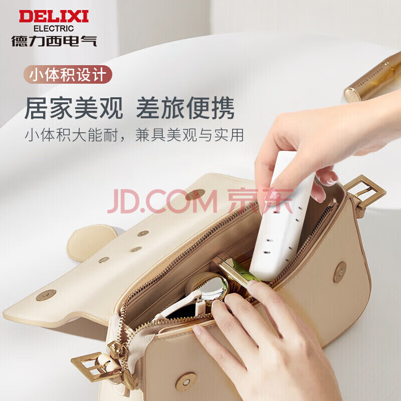 商品相册:德力西(DELIXI)电源延长线迷你插座/二脚两孔插排/插线板/排插/接线板 出差旅行便携一转6总控开关 1米第