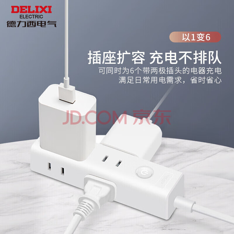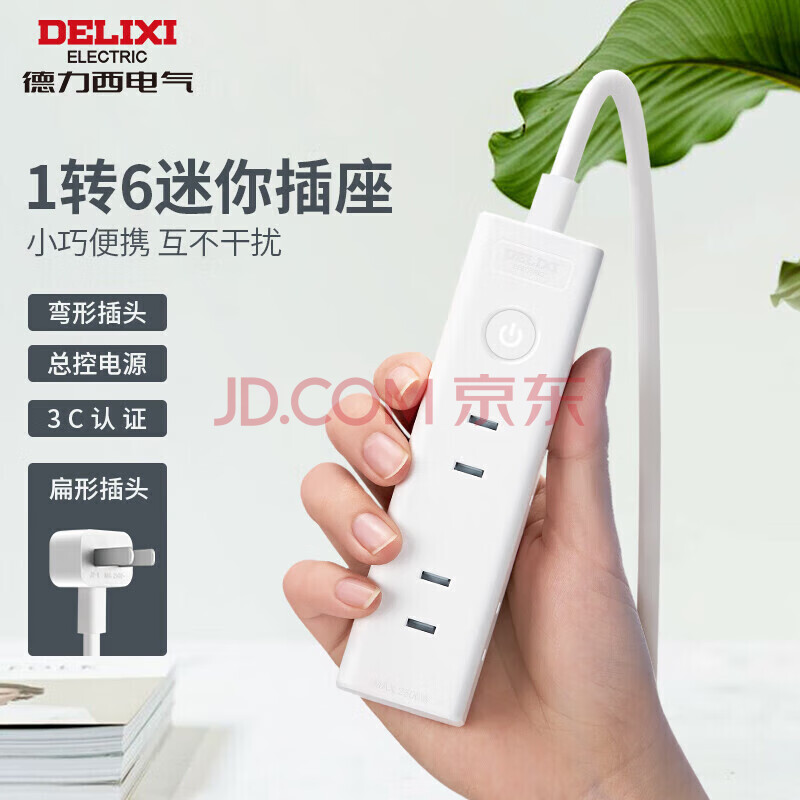 商品相册:德力西(DELIXI)电源延长线迷你插座/二脚两孔插排/插线板/排插/接线板 出差旅行便携一转6总控开关 1.8米第