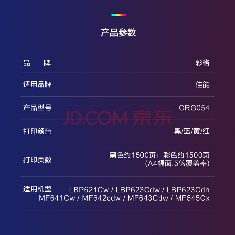 商品相册:彩格适用佳能CRG-054碳粉蓝色 LBP621Cw LBP623Cdn/Cdw墨粉 ic MF641Cw MF642cdw MF643Cdw MF645Cx碳粉第