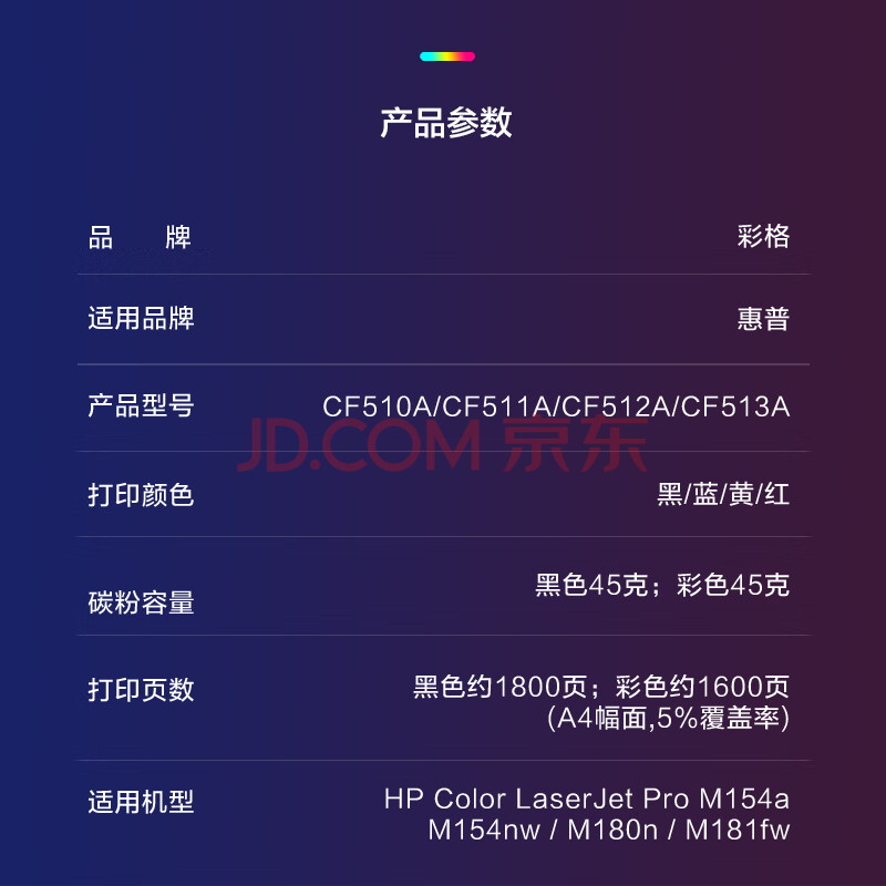 商品相册:彩格适用惠普204a碳粉m154a墨粉m180n m181fw m154nw cf510a打印机硒鼓墨盒粉盒hp Color LaserJet Pro 第