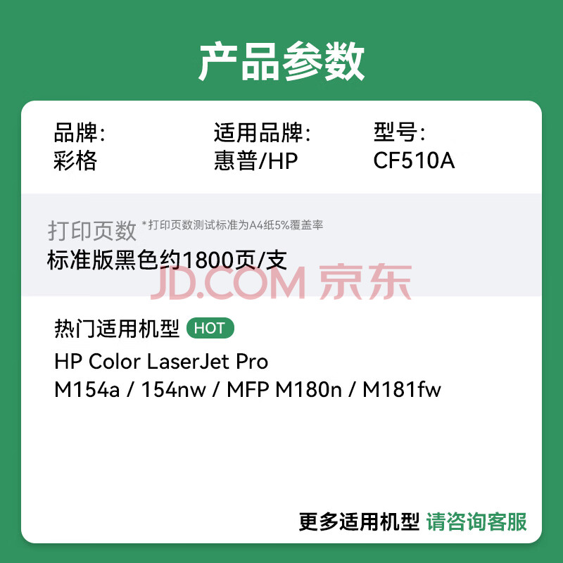 商品相册:彩格适用惠普204a硒鼓惠普m154a硒鼓hp Color LaserJet Pro m180n m181fw m154nw cf510a打印机硒鼓墨盒粉盒第