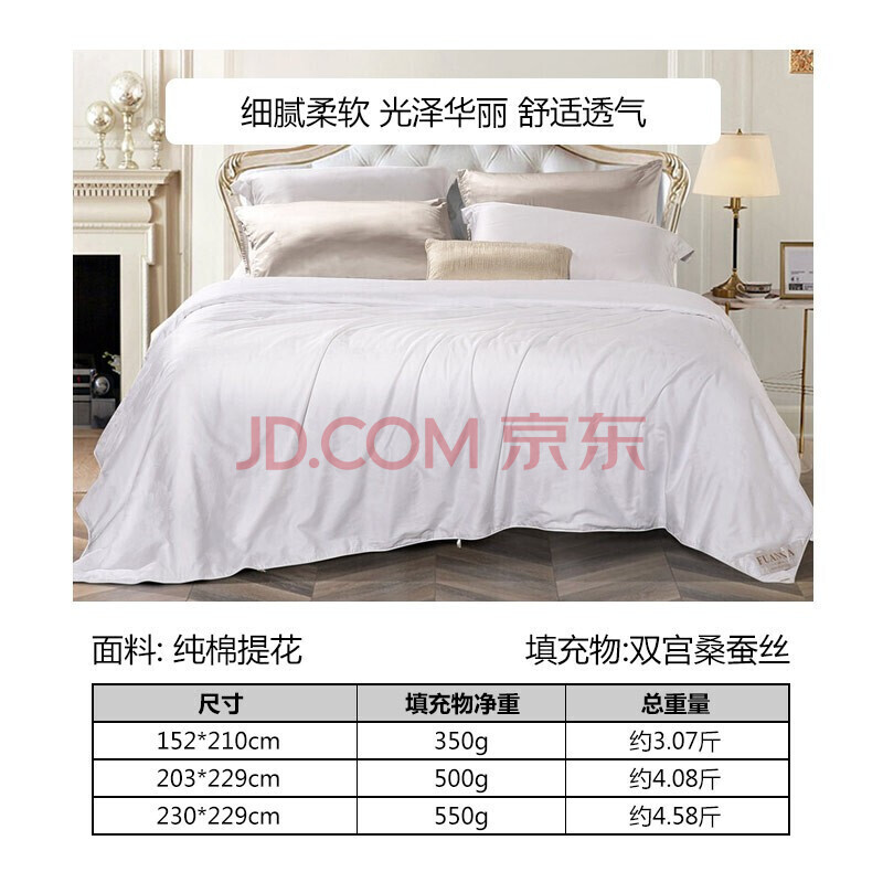 商品相册:富安娜蚕丝被100%桑蚕丝双宫夏凉被纯棉抗菌空调被子双人夏被230x229cm第