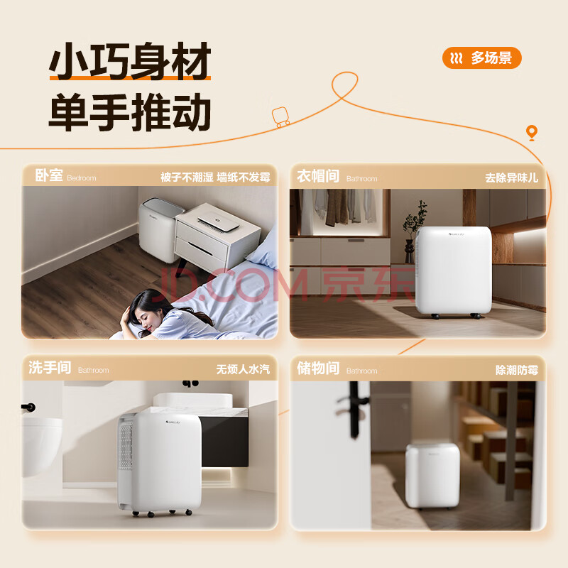 商品相册:格力(GREE)【低噪小体积】除湿机抽湿机家用12升/天单间面积≤24㎡梅雨季回南天抽湿器24H定时DH12EN第