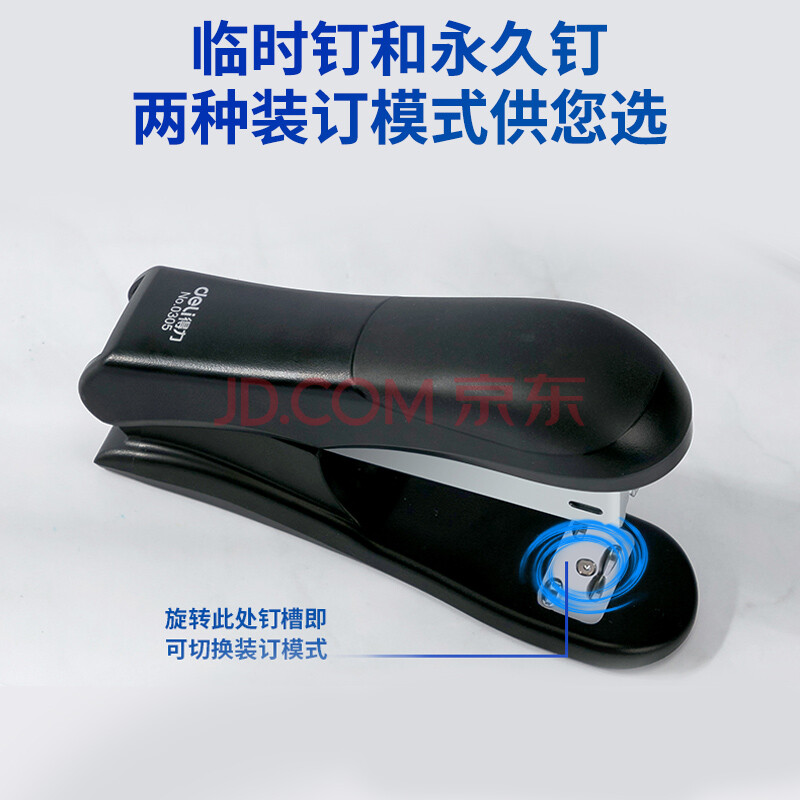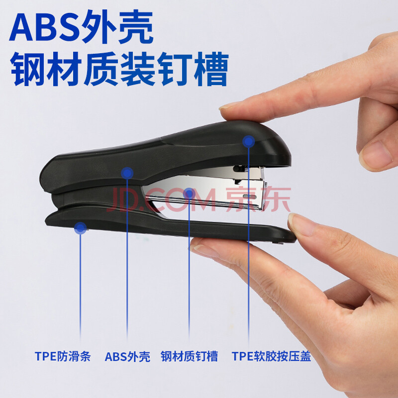 商品相册:得力(deli)订书机0305黑色12#号订书器可装订20页办公用品省力中型订厚书装订机第