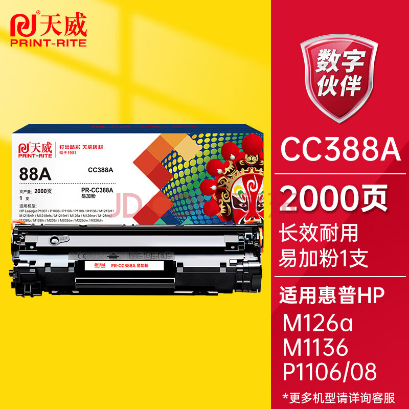 商品相册:天威CC388A/88X硒鼓 M1136硒鼓易加粉适用惠普 HP P1108 M126a P1106 M1139 M128fn M128fw M226dw打印机墨盒第
