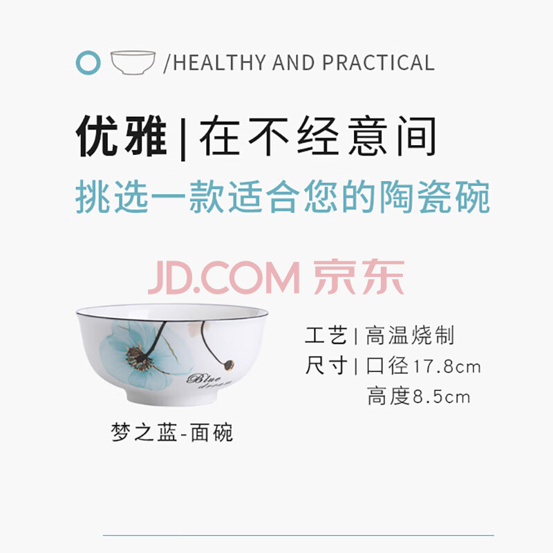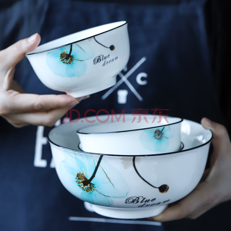 商品相册:苏氏陶瓷汤碗 梦之兰日式家用陶瓷面碗7英寸2只装中餐具第
