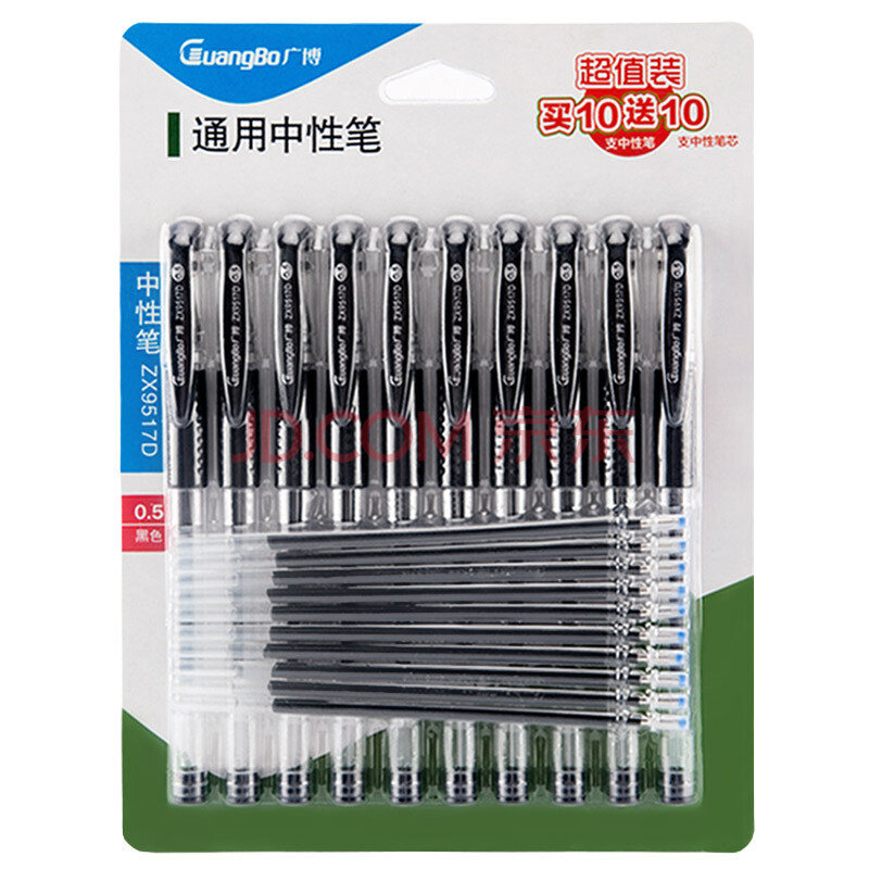 商品相册:广博(GuangBo)(GuangBo)0.5mm黑色经典款中性笔 签字笔套装(10支水笔+10支笔芯)20支装 ZX9517D第