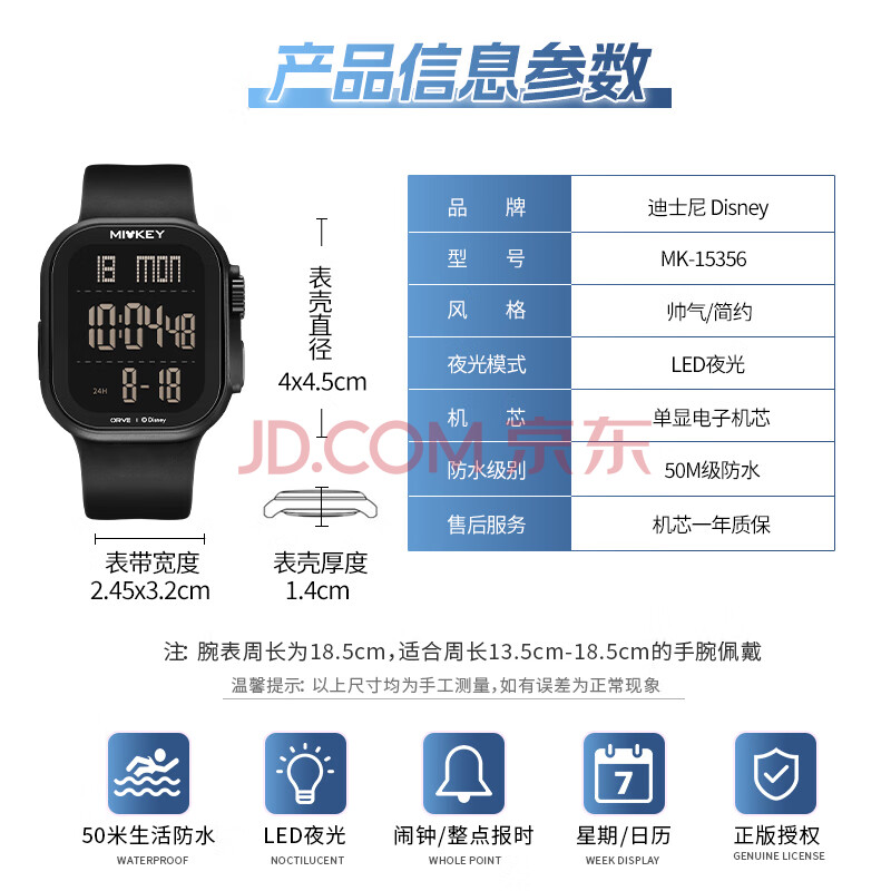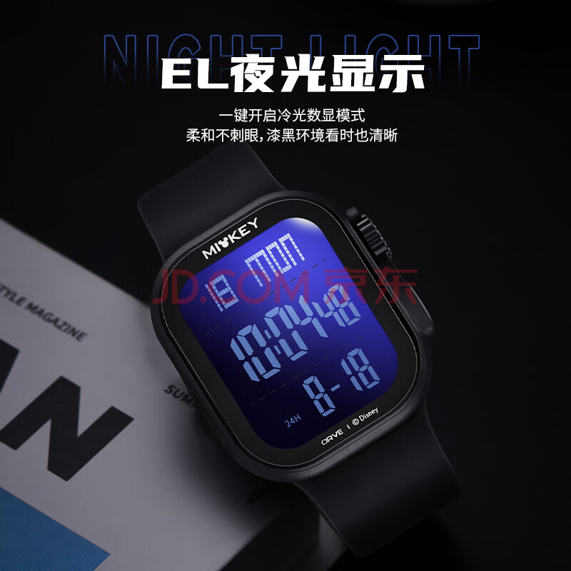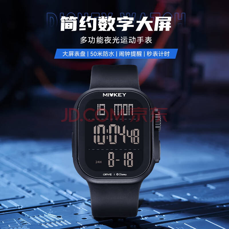 商品相册:迪士尼(Disney)运动手表大屏数显潮流防水青少年初中生高中学生多功能电子表开学第