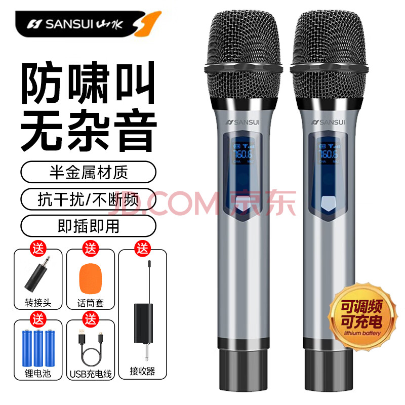 商品相册:山水(SANSUI)山水麦克风无线麦克风话筒家用唱歌K歌一拖二户外舞台音响ktv麦克风主持会议卡拉OK直播第