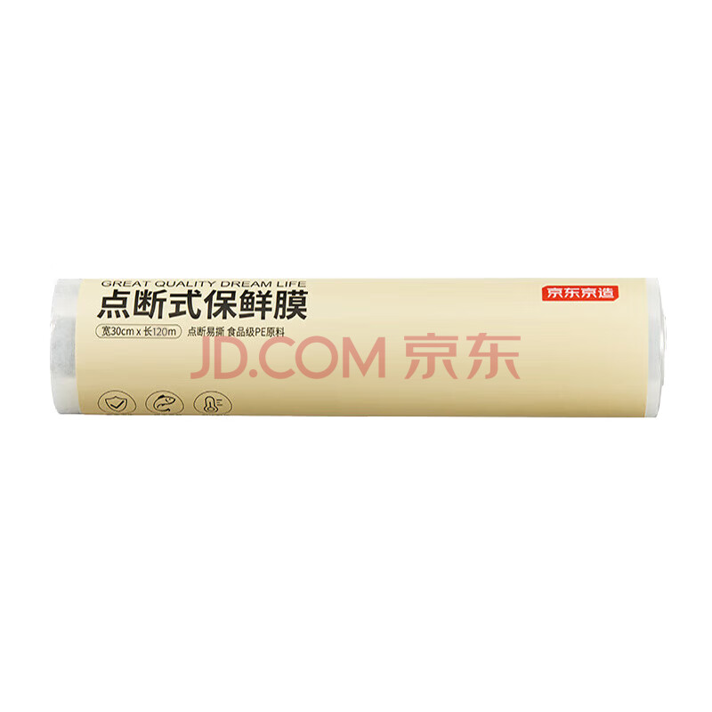 商品相册:京东京造 保鲜膜食品级 点断式大号 耐高温 【120米×30cm】第