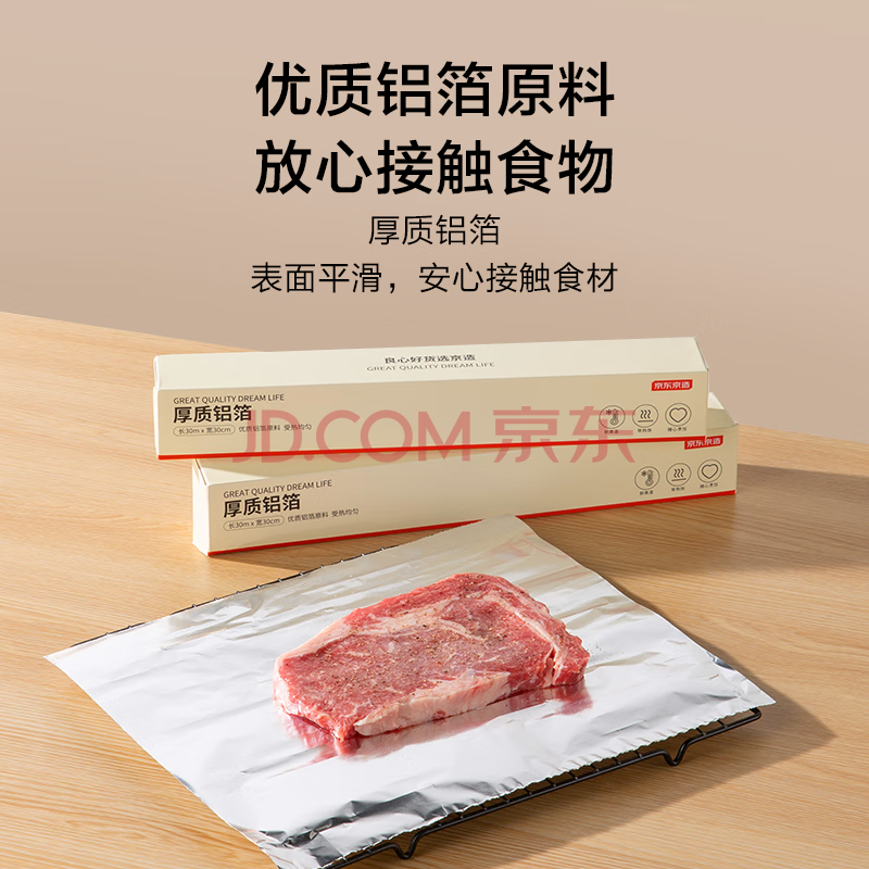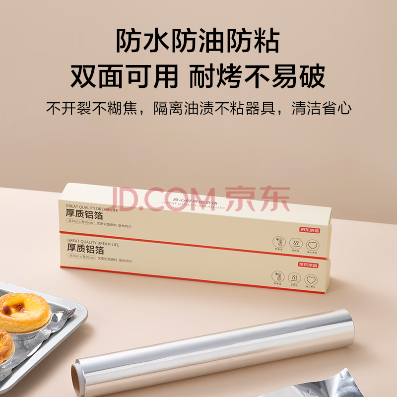 商品相册:京东京造 锡纸 烤箱空气炸锅专用烧烤露营烘焙加厚铝箔卷【30米×30cm】第
