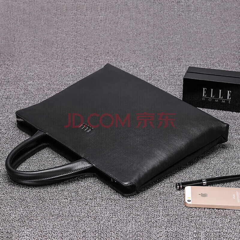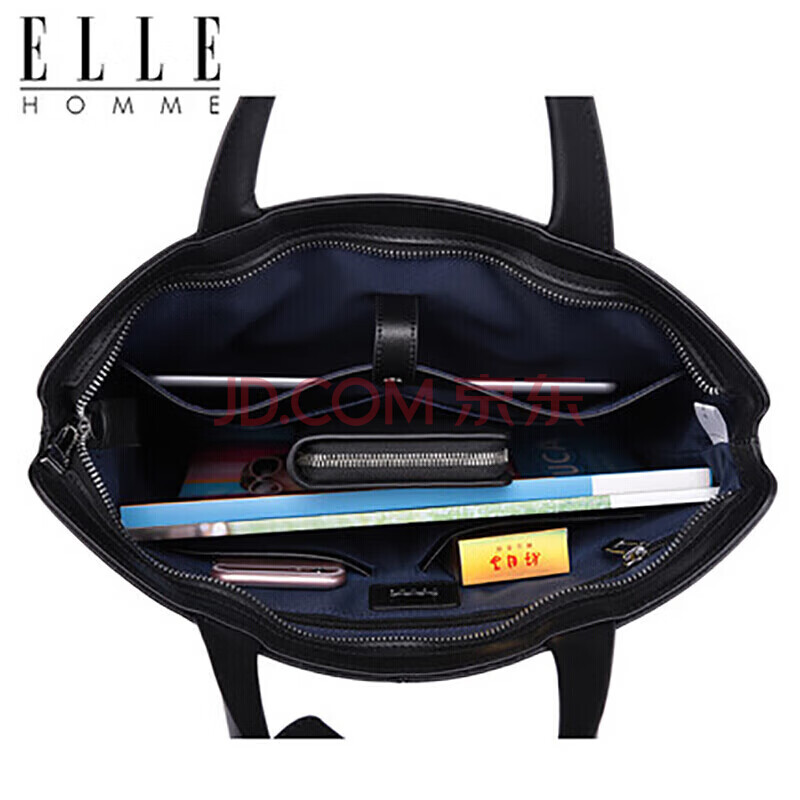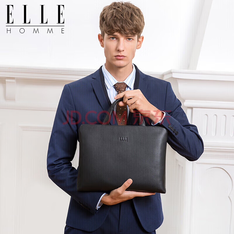 商品相册:ELLE HOMME男士公文包 时尚真皮手提包 休闲商务电脑包牛皮男包262510黑色第