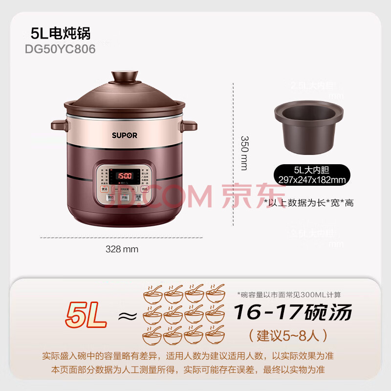 商品相册:苏泊尔(SUPOR)电炖锅 电炖盅 煲汤锅炖汤锅 电煮锅 燕窝炖盅 煮粥神器 电砂锅 5L家用陶瓷内胆DG50YC806多功能锅第1张/共8