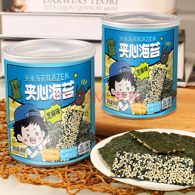 商品相册:ZEK芝麻海苔夹心脆 每日夹心海苔休闲零食小吃 儿童零食即食40g第