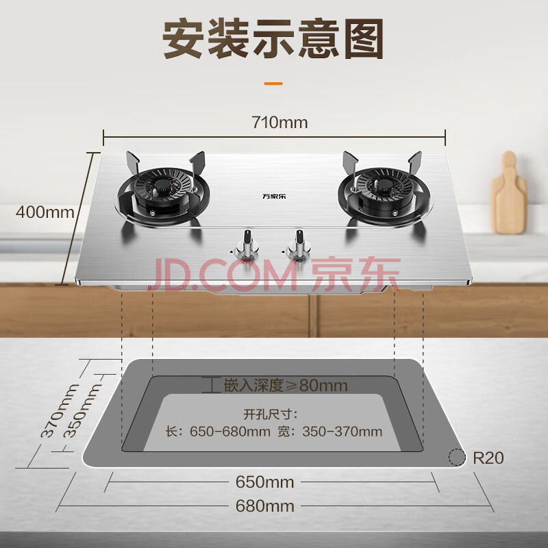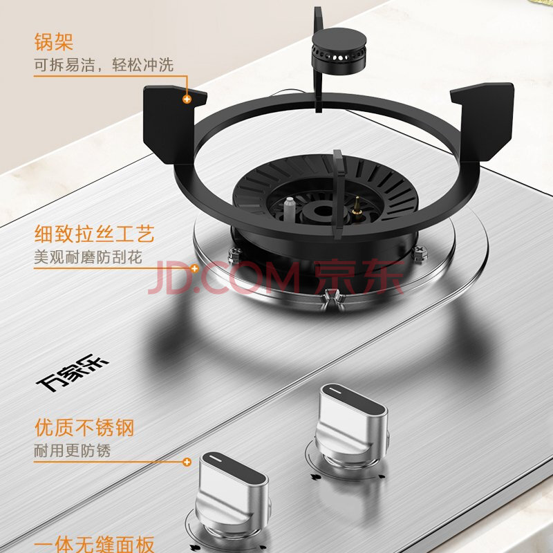 商品相册:万家乐燃气灶 4.5kw猛火灶 台式嵌入式两用 一级能效 不锈钢立体全进风燃气灶(天然气)JZT-PQA2G第