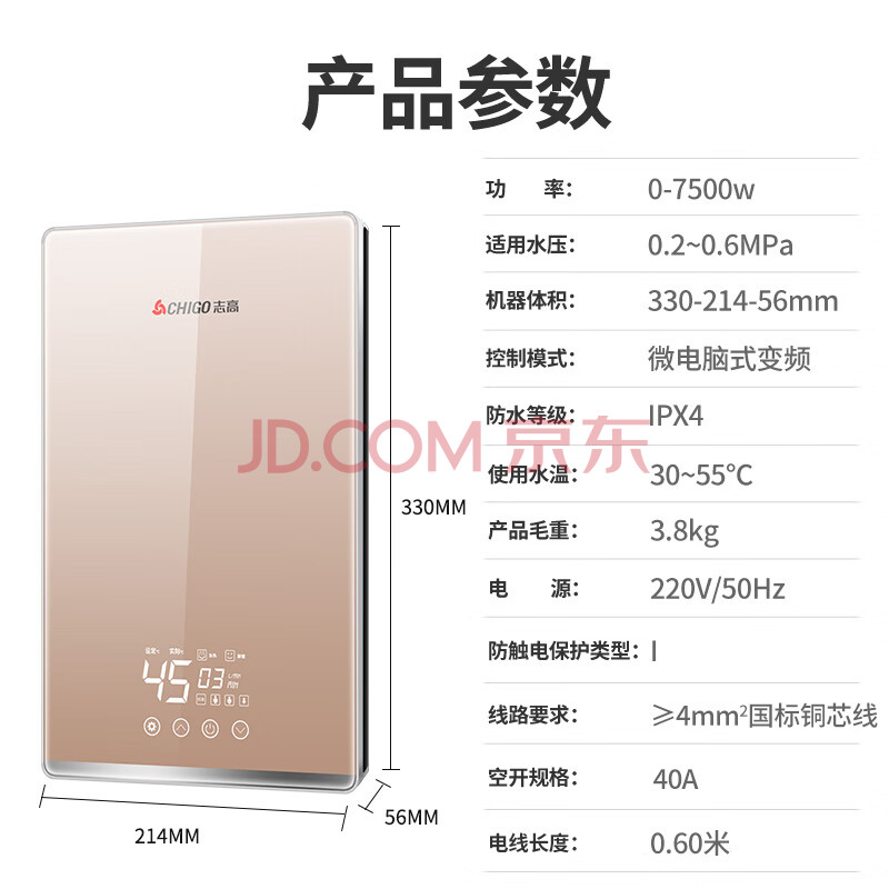 商品相册:志高(CHIGO)即热式电热水器7500W速热恒温小厨宝热水器省电家用集成淋浴洗澡免储水 功率可调ZG-KB732第