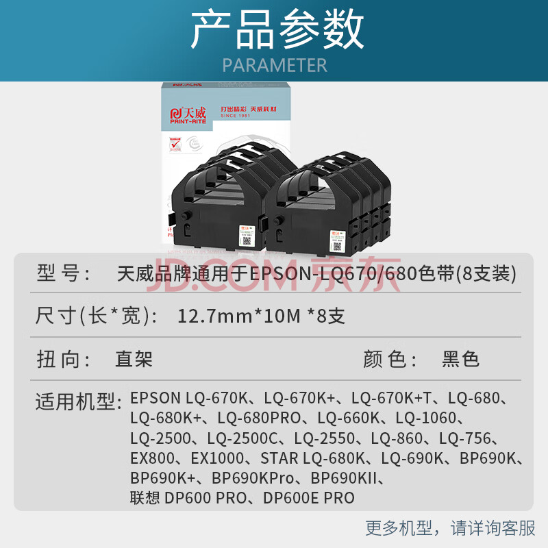 商品相册:天威LQ670K色带LQ680K色带架8支装适用爱普生EPSON LQ670K 670K+ LQ680 660K 680K+ 680PRO打印机第