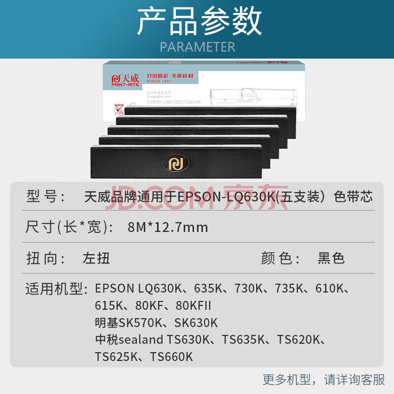 商品相册:天威LQ630K色带芯5支装适用爱普生LQ615KII 630KII 615K 635K 730K 730KII 735KII 610KII 635KII 80KF第