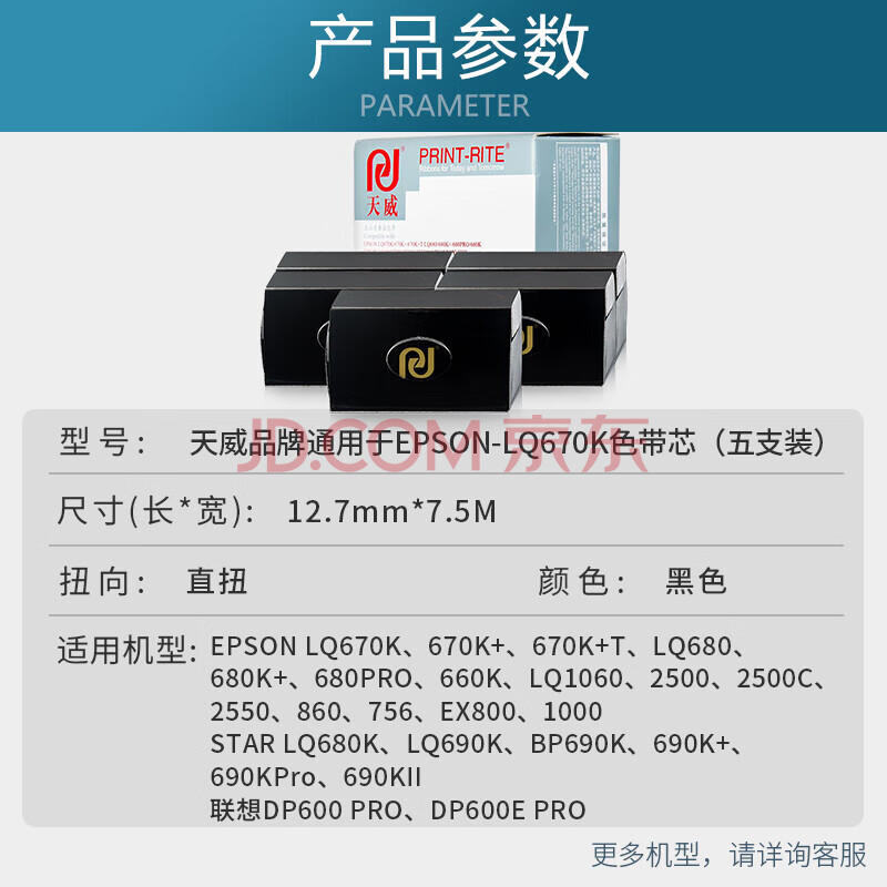 商品相册:天威 LQ670K 五支装色带芯 适用EPSON LQ670K 670K+ 670K+T LQ680 680K+ 680PRO 1060 2500 660K色带第