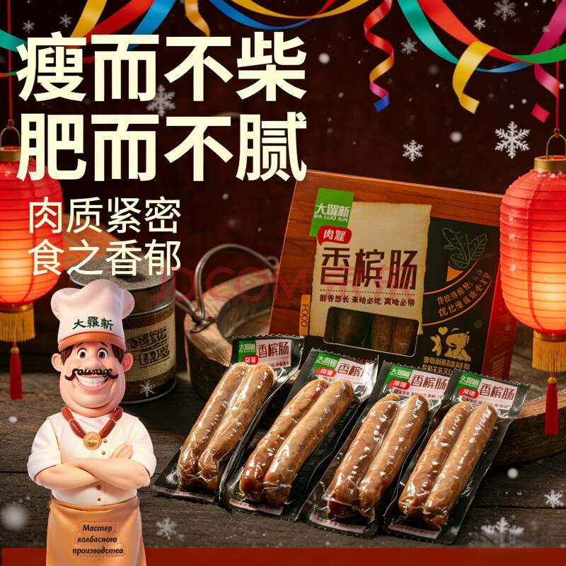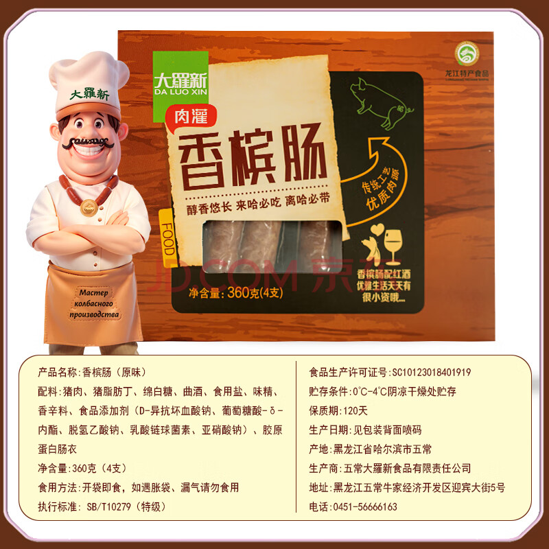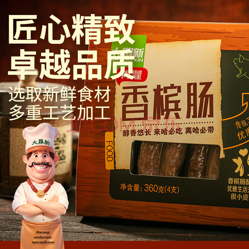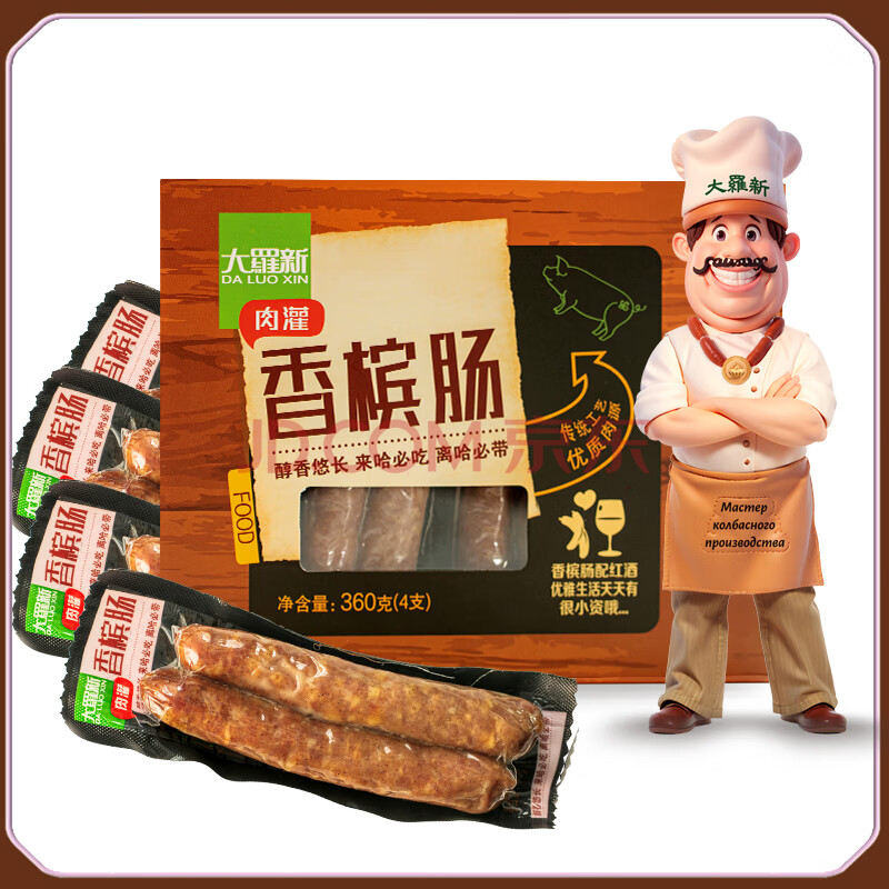 商品相册:大羅新香槟肠 360g盒装(8根)女士爱吃 俄罗斯风情甜口猪肉肠第