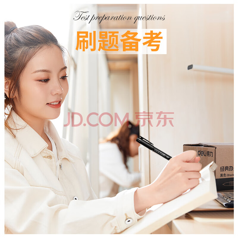 商品相册:得力(deli)80支拔帽中性笔水笔签字笔 办公用品 黑色0.5mm全针管33108第
