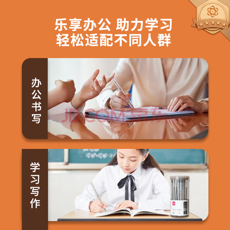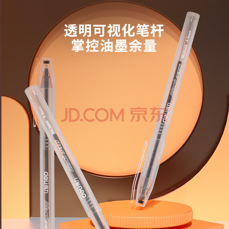 商品相册:得力(deli)拔帽黑色中性笔水笔签字笔 0.5mm全针管办公用品 40支/桶33107第
