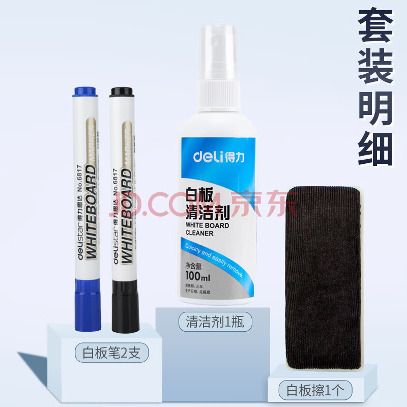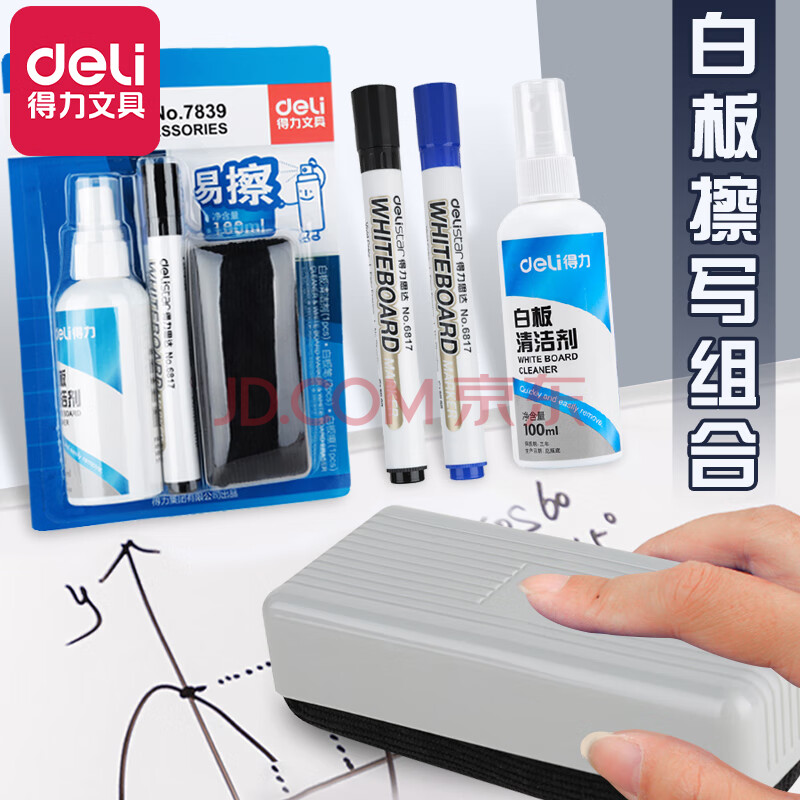 商品相册:得力(deli)白板擦组合7839可擦易擦白板清洁剂磁性白板清洗剂记号笔擦写字板擦喷雾清理液组合套装第