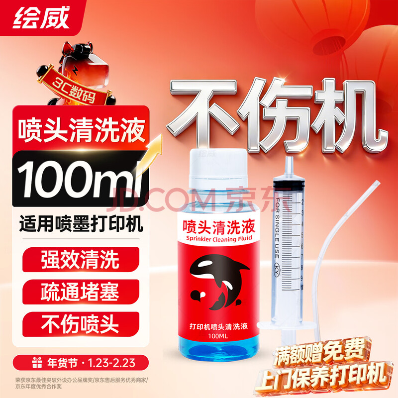 商品相册:绘威 喷头清洗液(配针管)适用喷墨打印机惠普佳能爱普生墨盒 清洁疏通堵塞墨水 佳能PG845/846墨盒喷头清洗第