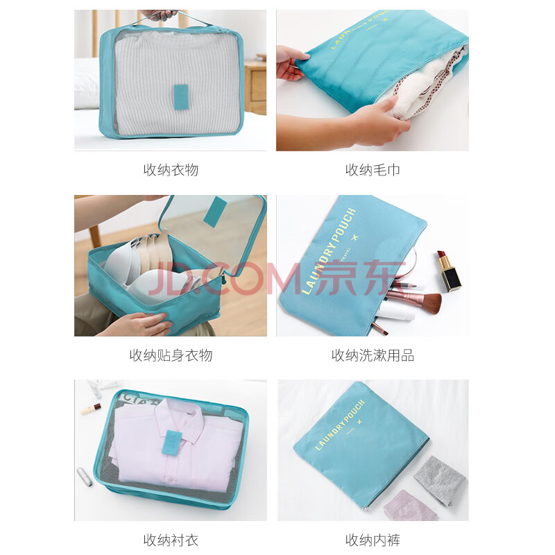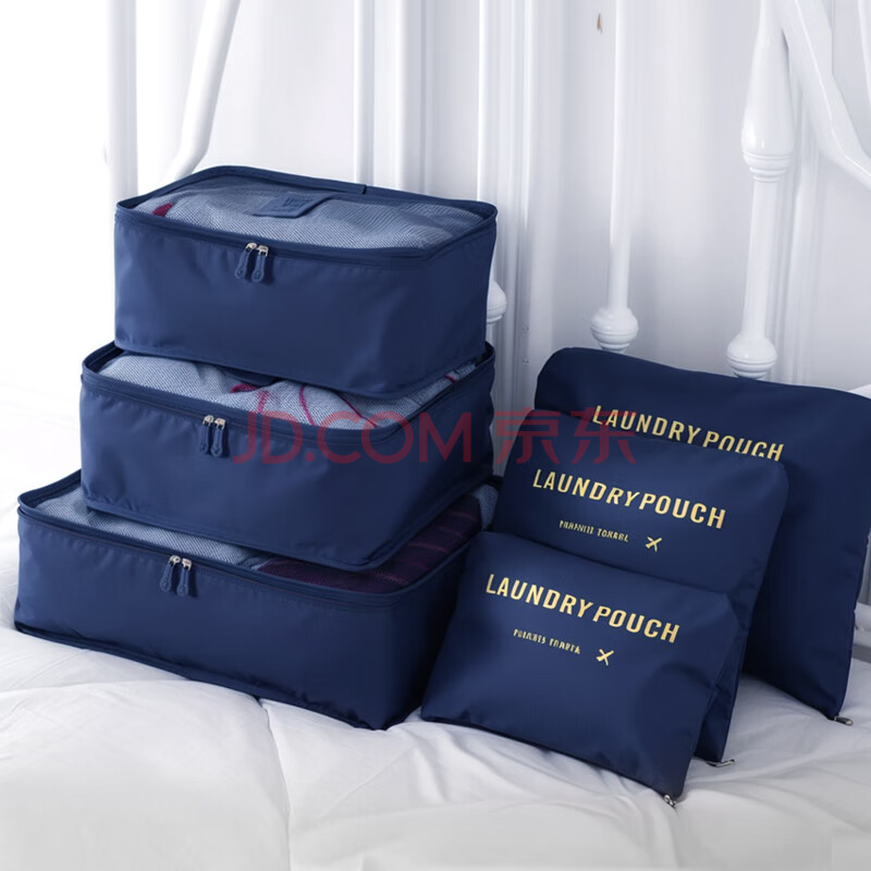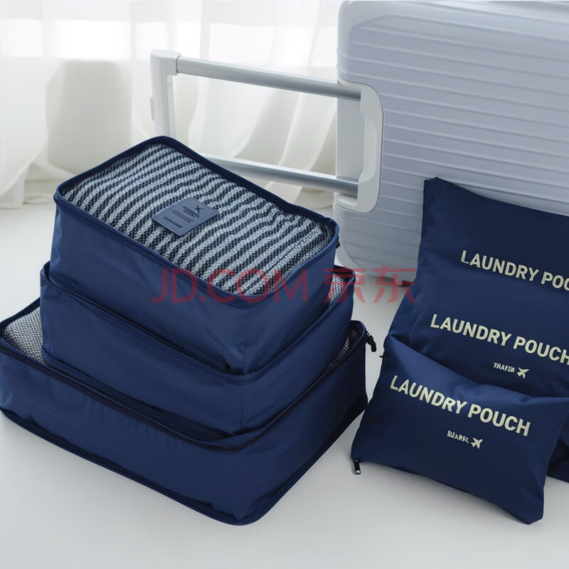 商品相册:欣沁 洗漱收纳套装洗漱收纳袋李箱衣物整理袋收纳包6件套装 藏青色第